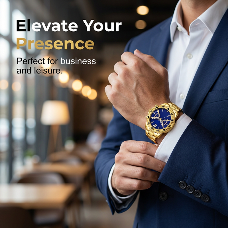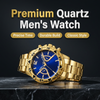 PREMIUM GOLD QUARTZ WATCH - Experience unparalleled elegance with this premium gold-tone quartz watch, featuring a striking blue dial and precise timekeeping for the modern gentleman.